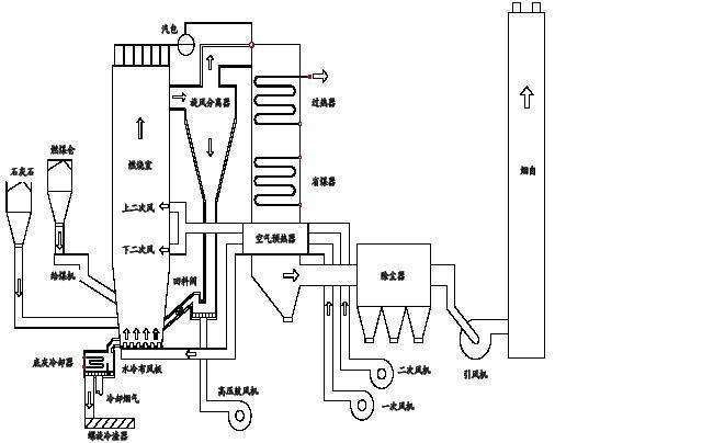 由于流化床中劇烈的質量和熱量交換,未燃盡的煤粒子通過多次循環,可增加其在爐內停留的時間,有利于燃料充分燃燒。